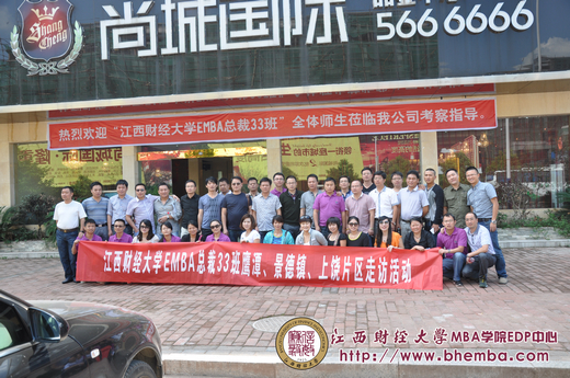 第二天我們前往弋陽,參觀了舒光虎同學在當?shù)氐捻椖俊獏R金廣場。匯金廣場秉承“城市在哪里,匯金就到哪里”的品牌理念,旨在加速發(fā)展當?shù)氐慕?jīng)濟,同時也引起了當?shù)卣腿罕姷母叨汝P(guān)注。舒光虎同學熱情的為大家講解他的項目,交流自己的管理經(jīng)驗,并和其他同學做了深入的交流,互相學習和借鑒,如何把握時機,讓自己的企業(yè)發(fā)展的更好更快。之后我們又前往橫峰,參觀了王俊華同學的項目——尚城國際,尚城國際主營房地產(chǎn),在當?shù)厥歉邫n的住宅,也引起了熱烈的反響。接著我們又馬不停蹄的趕往鷹潭,參觀了齊愛平同學的項目——家樂居家裝城,里面所有的家裝設施一應俱全,正響應了“走進家樂居,帶回一個家”的理念。