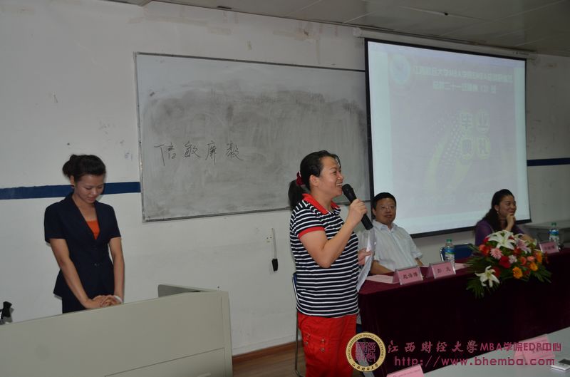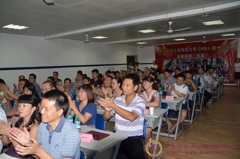 2011年7月25日至27日,江西財(cái)經(jīng)大學(xué)MBA學(xué)院總裁21班即贛州3班的同學(xué)從贛州來到南昌,上完了最后一門課程——《財(cái)務(wù)管理》,這意味著他們圓滿地完成了一年的學(xué)業(yè),學(xué)期就要結(jié)束了。27日下午,在江西財(cái)大青山園校區(qū),隆重的畢業(yè)典禮為贛州3班的同學(xué)而舉行。