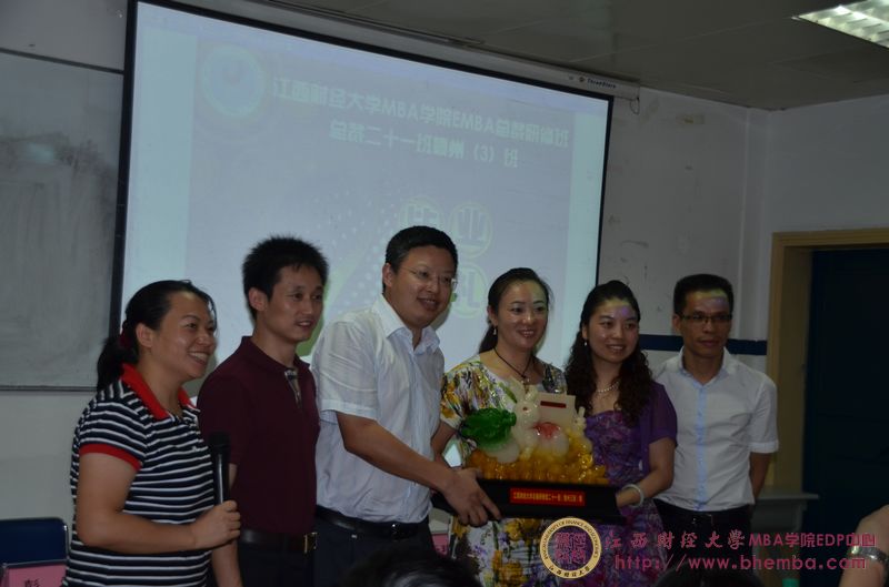EDP中心齊玲博主任在致辭中親切地提到了很多同學(xué)留給她的深刻印象:副班長鐘曉紅和徐崢嶸,在班長郭成珉公司上市事務(wù)繁忙的時(shí)候,敢于擔(dān)當(dāng),起到了積極的領(lǐng)導(dǎo)表率作用;宣傳委員陶亮,是個(gè)全才型的同學(xué),班級里的大事小事,重活累活,都搶著干,并且很細(xì)心地把每次的上課內(nèi)容都建立了詳細(xì)的電子筆記供同學(xué)們參考;文藝委員鐘瓊,多才多藝,積極地發(fā)揮了自己的文藝才華,也帶領(lǐng)贛州3班的同學(xué)展現(xiàn)出了富有活力、青春激揚(yáng),勢不可擋的風(fēng)貌;曾廣慶,體育委員,率領(lǐng)大家在運(yùn)動(dòng)會(huì)上創(chuàng)造了一個(gè)又個(gè)奇跡。同學(xué)們在參加學(xué)校的學(xué)習(xí)和活動(dòng)之余,還共同創(chuàng)立了名為“一度”的投資公司,有了這家公司,總裁21班的同學(xué)將永遠(yuǎn)拼搏在一起,創(chuàng)造更加輝煌的共同的事業(yè)。