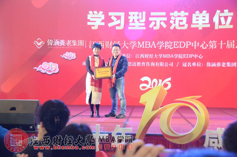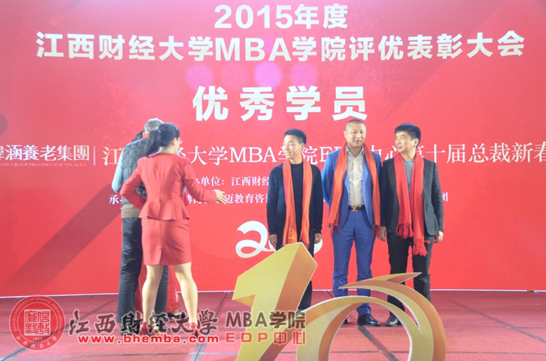 江西財(cái)經(jīng)大學(xué)MBA學(xué)院EDP中心發(fā)展的十年中,得到了許多學(xué)校及學(xué)院領(lǐng)導(dǎo)的支持,過(guò)去的十年有近萬(wàn)余名企業(yè)家在我們這里學(xué)習(xí),可以說(shuō)是所有學(xué)員成就了EDP中心的十年輝煌。當(dāng)天我們也從EDP中心近萬(wàn)余名學(xué)員中選出了十一位“最具影響力人物” ,這些人也許不是家財(cái)萬(wàn)貫、也許平時(shí)默默無(wú)聞,但他們卻是EDP中心十年發(fā)展中最珍貴的財(cái)富。在所有人的見證下學(xué)校為他們頒發(fā)了“最具影響力人物獎(jiǎng)”證書。