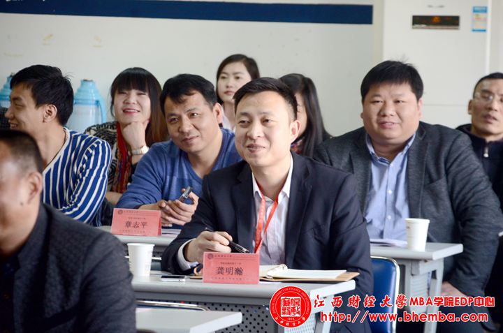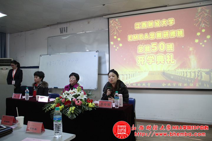 ??緊接著,江西財(cái)經(jīng)大學(xué)MBA學(xué)院EDP中心主任齊玲博女士發(fā)表講話。在講話中齊主任首先代表江西財(cái)經(jīng)大學(xué)MBA學(xué)院EDP中心對(duì)各位領(lǐng)導(dǎo)、嘉賓和總裁50班的同學(xué)的到來(lái)表示熱烈的歡迎及衷心的感謝。并指出:“在當(dāng)前新常態(tài)經(jīng)濟(jì)條件下,學(xué)習(xí)已經(jīng)成為事業(yè)發(fā)展的需要、高端人脈擴(kuò)充的需要、和諧家庭發(fā)展的需要,要在學(xué)習(xí)中有所收獲,承擔(dān)責(zé)任,要學(xué)會(huì)否定自己,學(xué)習(xí)是一種境界,要及時(shí)反思,理清頭緒,求證真理。學(xué)習(xí)更是一種生活方式的轉(zhuǎn)變,由富到貴、由貴到雅、由雅到仁、由仁到和的?!饼R主任還對(duì)總裁班的學(xué)習(xí)做了簡(jiǎn)要介紹,她要求同學(xué)們?cè)谟螌W(xué)過(guò)程中要“看名勝、看名景、看名企、聽(tīng)名商?!辈⑶覐?qiáng)調(diào):“江西財(cái)經(jīng)大學(xué)EMBA總裁班的學(xué)習(xí),是終身制的學(xué)習(xí),提倡永不畢業(yè)”要求總裁50班的同學(xué)們要做到“五個(gè)歸零”即:“職務(wù)歸零,年齡歸零,財(cái)富歸零,學(xué)歷歸零,性別歸零?!痹趯W(xué)習(xí)中應(yīng)該忘卻自己在企業(yè)里的角色和身份,重新走進(jìn)校園,我們就是來(lái)這里解疑釋惑的學(xué)生,應(yīng)保持謙虛的學(xué)習(xí)態(tài)度,尊敬老師,勤學(xué)多問(wèn),營(yíng)造融洽和諧的學(xué)習(xí)氛圍。
