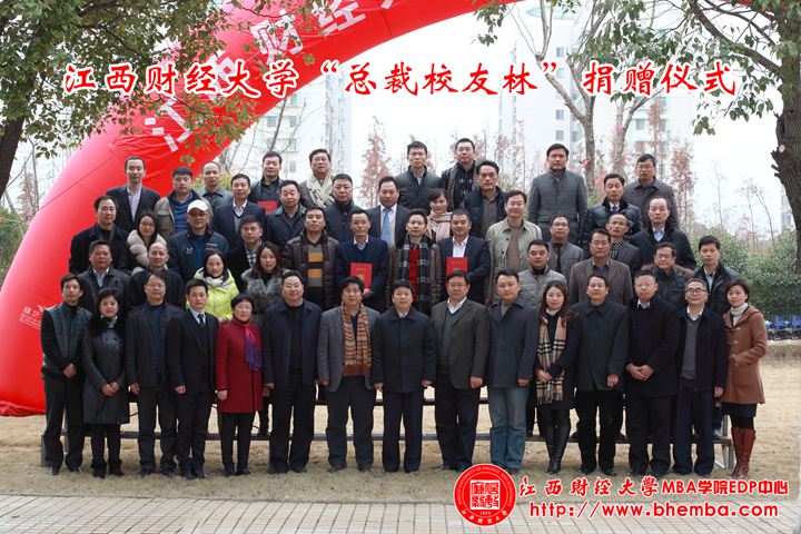 1月7日上午,江西財(cái)經(jīng)大學(xué)“總裁校友林”捐贈(zèng)儀式隆重舉行。校長(zhǎng)王喬、副校長(zhǎng)王小平,省工商局副局長(zhǎng)、著名校友劉建華等領(lǐng)導(dǎo)出席并為“總裁校友林”揭牌,黨辦校辦、宣傳部、MBA學(xué)院、校友辦、后勤保障處等部門負(fù)責(zé)人及來自總裁班14、19、22、36、41、43、45、46、47班的學(xué)員代表一起參加了活動(dòng)。捐贈(zèng)儀式由后勤保障處處長(zhǎng)彭元主持。