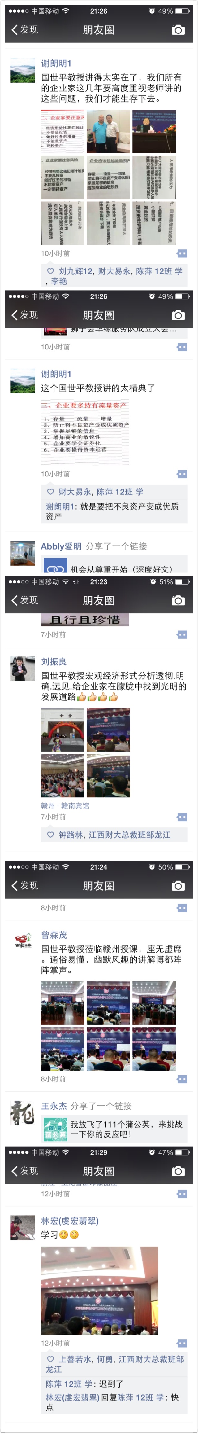 ??學員們紛紛表示,此次國世平教授的論壇讓他們受益匪淺,更加明晰了當前的宏觀經(jīng)濟形勢及未來的投資方向,今后有機會將會再次前來聆聽國教授的真知灼見。江西財經(jīng)大學MBA學院EDP中心已經(jīng)有開設了52期總裁研修班,現(xiàn)目前MBA學院總裁53班也即將在7月份開課,這將為更多的企業(yè)管理者提供一個學習交流的機會,也期待更多的優(yōu)秀企業(yè)家們加入我們這個大家庭!