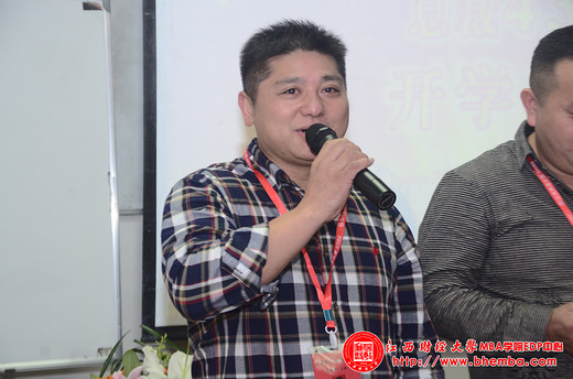 接著江西恒源實業(yè)有限公司張敏金同學代表新生上臺發(fā)言,闊別校園二十年再次重返,百感唏噓。希望通過學習開拓視野,結(jié)識摯友。期待在MBA總裁班這個嶄新的起點,人生事業(yè)再一次有新的改變。