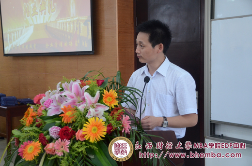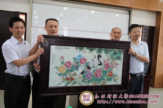 而隨后來自江西省威博實業(yè)發(fā)展有限公司董事長王謨顯同學(xué)發(fā)表了感言,也代表全班同學(xué),做了言簡意賅的畢業(yè)發(fā)言,言語雖然不多,但是發(fā)自肺腑,王謨顯向?qū)W院和EDP中心一年來對同學(xué)們的關(guān)懷指導(dǎo)表示誠摯的感謝,也表達(dá)了對母校和同學(xué)們彼此之間衷心的祝愿、祝福。隨后,熊海生班長率班上幾位男同學(xué),捧出29班給中心的畢業(yè)贈品:瓷壁畫。一份禮化作濃濃的情誼,總裁29班的全體學(xué)員用無聲的言語表達(dá)了對母校的眷戀之情與感恩。