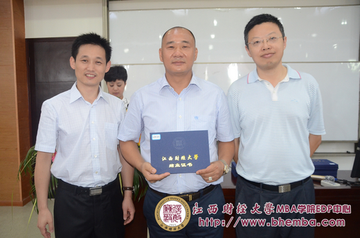 時至十點,蒞臨畢業(yè)典禮的領(lǐng)導(dǎo)們來到典禮現(xiàn)場,他們是江西財經(jīng)大學(xué)MBA學(xué)院副院長彭元,江西博海新思邁教育咨詢有限公司顧問趙海博,江西財經(jīng)大學(xué)MBA學(xué)院EDP中心副主任漆飛。接著,班主任之一也是主持人徐谷珍老師致開場詞,典禮正式開始,按流程第一項是學(xué)院領(lǐng)導(dǎo)給班級學(xué)員頒發(fā)結(jié)業(yè)證書,院領(lǐng)導(dǎo)和中心領(lǐng)導(dǎo)三人上臺,在激情亢昂的音樂中漆飛副主任宣讀畢業(yè)名單,彭元教授、趙海博先生依次授予每個學(xué)員結(jié)業(yè)證書,并合影留念。這一刻值得永遠(yuǎn)銘記,因為你們的付出得到了收獲,這一刻也見證了EMBA學(xué)院陪你們走過的時光。
